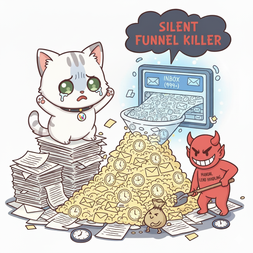 - Each new lead triggered an email notification with raw fields and zero context.