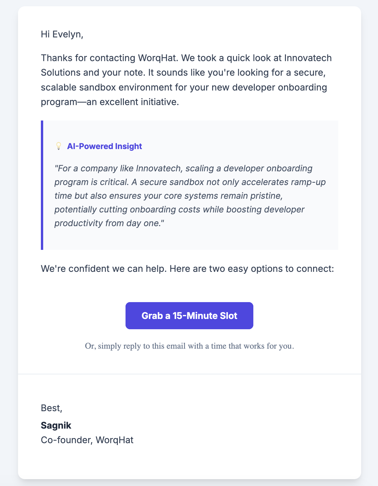 - A personalized acknowledgment email so prospects felt seen.